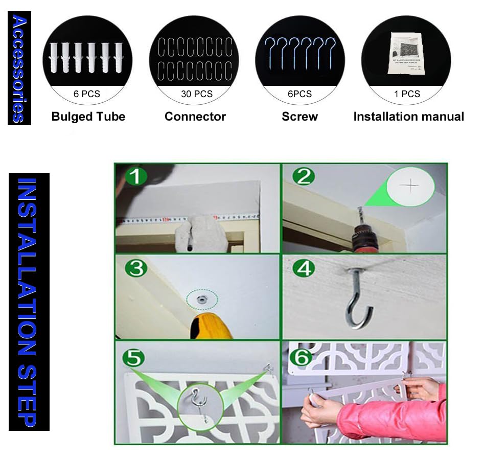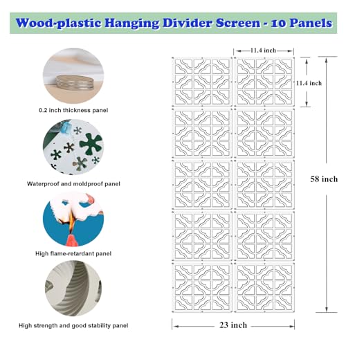 - Screen Panel Size: 11.4x11.4inches,thickness=0.2inches.Package include 10 pieces hanging screen panels and all needed accessories.