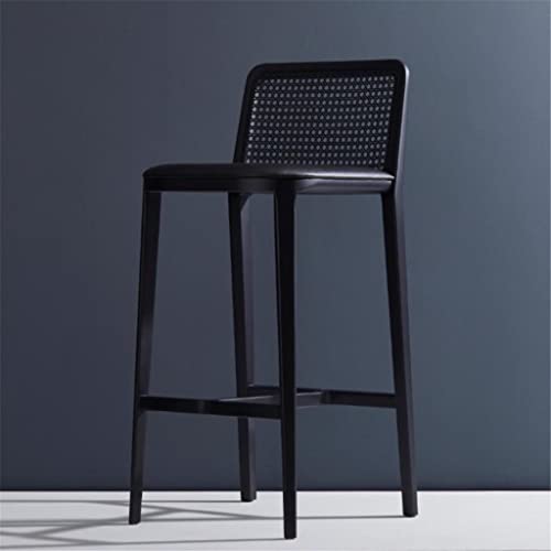 Home Home Bar Furniture LUKEO Bar Chairs Chinese Solid Wood Bar Chair High Feet Stool Rattan Backrest Island Chair for Bedroom (Color : Argento, Size : H75CM)
