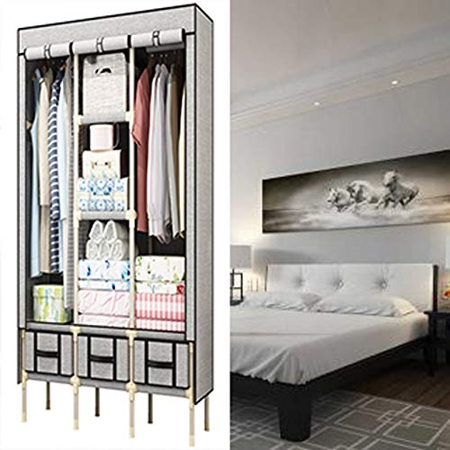 Home Bedroom Furniture LUKEO Fashion Simple Wardrobe Steel Tube Bold Reinforcement Wardrobe Fabric Thick Hanging Wardrobe Economical Storage Cabinet