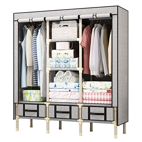 LUKEO Fashion Simple Wardrobe Steel Tube Bold Reinforcement Wardrobe Fabric Thick Hanging Wardrobe Economical Storage Cabinet