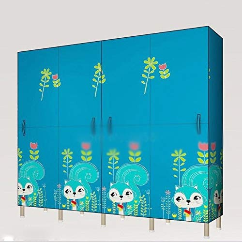 Home Bedroom Furniture LUKEO Large Space Simple Wardrobe Steel Pipe Thickened Fabric Solid Double Bedroom Assembled Storage Clothes Cabinet