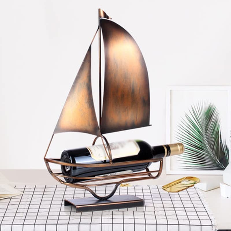 LUKEO Sailing Wine Bottle Holder Iron Art European Creative Wine Rack Bottle Storage Holder Home Decoration