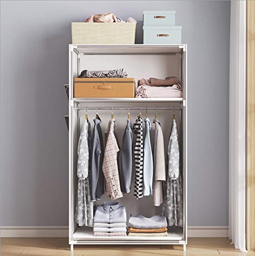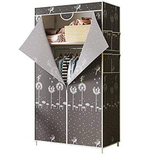 Home Bedroom Furniture LUKEO Simple Small Wardrobe Clothe Storage Cabinets Folding Non-woven Closet Steel Pipe Individual Wardrobe Bedroom Dust-proof (Color : Argento)