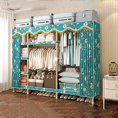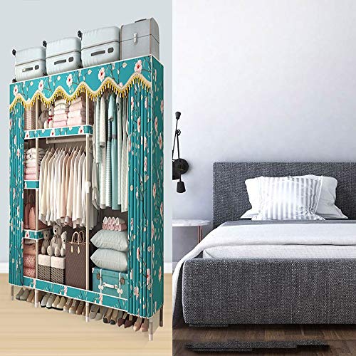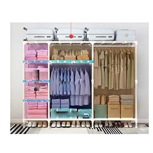 LUKEO Simple Wardrobe Assembly Bold Steel Cloth Wardrobe Simple Cabinet Bedroom Dormitory Household Fabric Wardrobe
