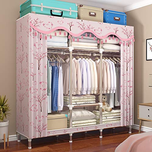 LUKEO Simple Wardrobe Folding Portable Closet Bold Reinforced Fabric Full Steel Frame Multifunctional Hanging Bedroom Furniture