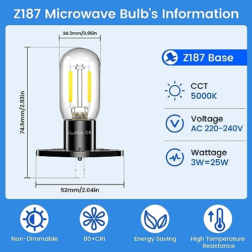 - 【Excellent Microwave Replacement Bulb】 Luxvista LED Z187 microwave bulb vertical right t170 base is perfect microwave replacement bulb fit for most brand microwave oven.