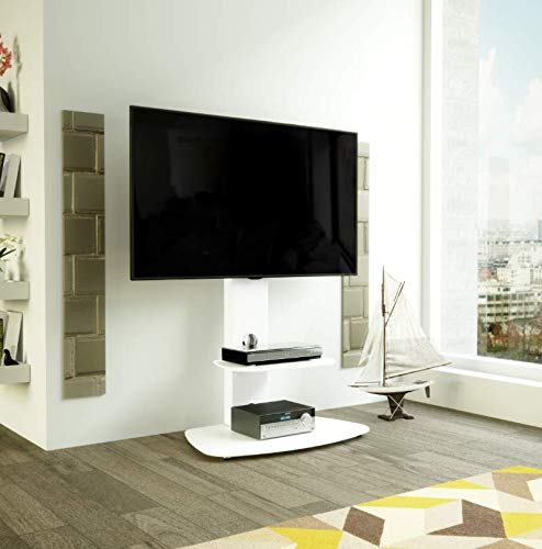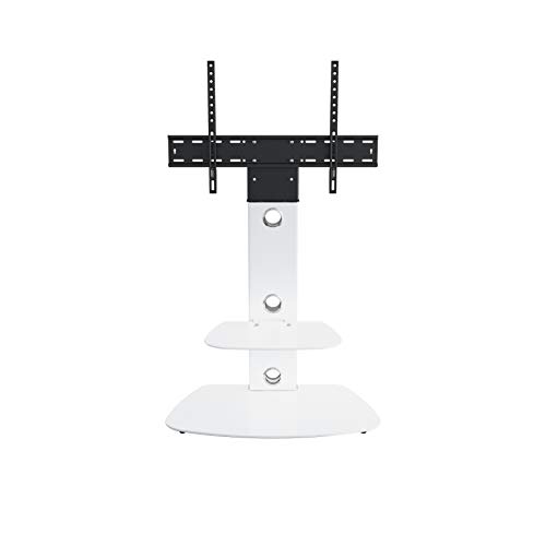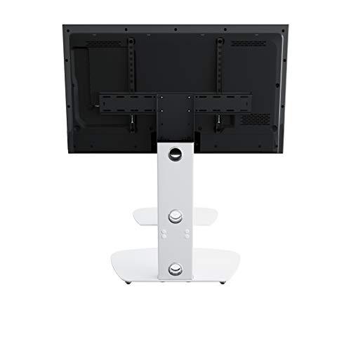 - SATIN WHITE COLUMN WITH WHITE GLASS SHELF AND BASE. Will seamlessly integrate your TV into your existing home décor. Perfect for placing in your lounge, living room, conservatory, orangery, bedroom - choices are endless!