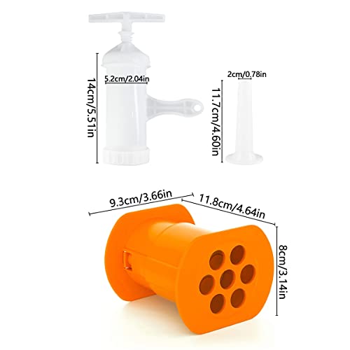 - 【Product Set】You will receive 2 different manual sausage machines. One is an orange hot dog machine, the size is 11.8x9.3X8 cm, you can make 7 sausages at the same time. There is also a white manual sausage stuffing machine, the size is 257x52 mm, the caliber is 20 mm, and there are many options for different styles.
