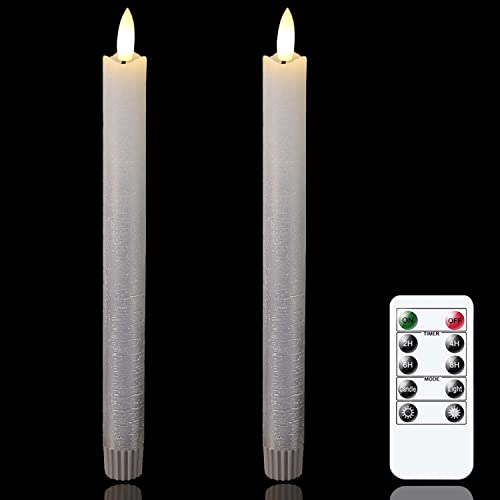 Mavandes LED Flameless Taper Candles with Remote Timer,Ivory Battery Operated Flickering Window Candles, Pack of 2 Real Wax Warm Fire 3D-Wick Fla
