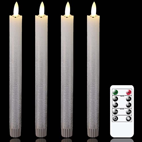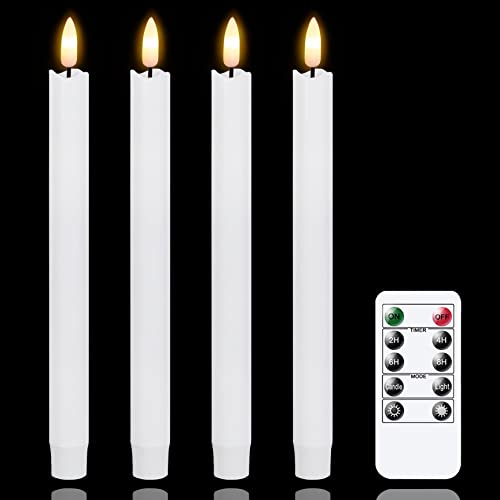 • REMOTE AND TIMER CANDLES: All flameless taper candles can be remote by 10-Key remote control(ON/OFF/Timer/Flickering/Brightness). You can make 2/4/6/8 hours timer, LED taper candles will cycle every 24 hours once set, there is no need to turn on/off button every time use. Flickering taper Candles cannot be adjusted in brightness in flickering mode