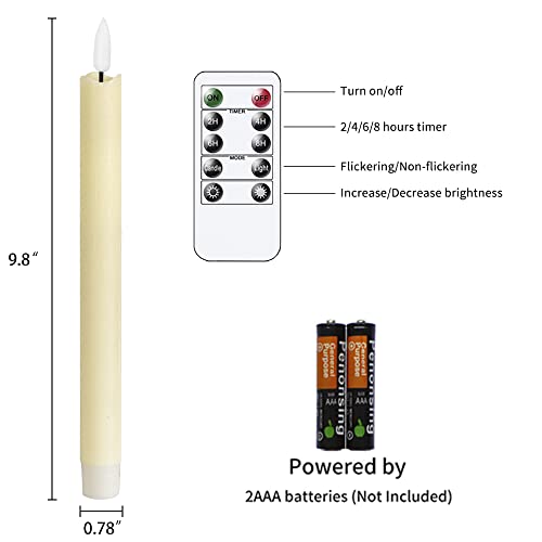 • LED TAPER CANDLES: You will receive 2 ivory flameless taper candles(2x24.5cm), one remote control and one manual. Our flickering taper candles are made of the highest quality real wax and have been strictly tested before leaving the factory to ensure the flameless taper candles are durable and not easy cracked