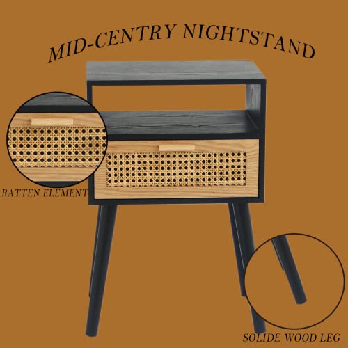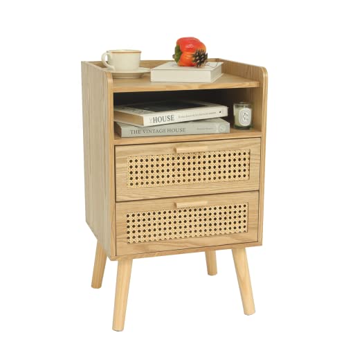 - Stylish and Practical Storage: The bedside table features a two-tier storage design, a unique extra top shelf and a spacious tabletop with a natural rattan drawer to fit your snug home and provide more space to put down books, snacks, drinks.