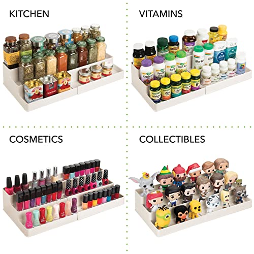 - Compact design: Designed especially to save space, the storage shelf is measured at 23.5 cm x 26.7 cm x 10.2 cm. It is expandable to fit wider spaces. Place throughout the bathroom or in cabinets