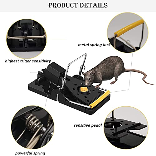 - 🐭【Efficient and Sensitive】 mouse traps is built in strong and sensitive spring. When the mice touch the pedal, it will trigger the switch, the open mouth will snap the mouse swiftly.The success rate of catching mice is as high as 99%