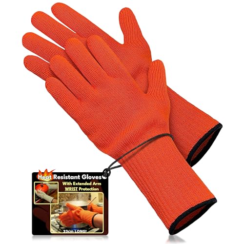 - HOLD ANYTHING: Hold hot, even burning baking tins and dishes safely with our heat resistant long gloves with fingers. Your hands will stay comfortable using these heat resistant gloves.