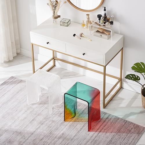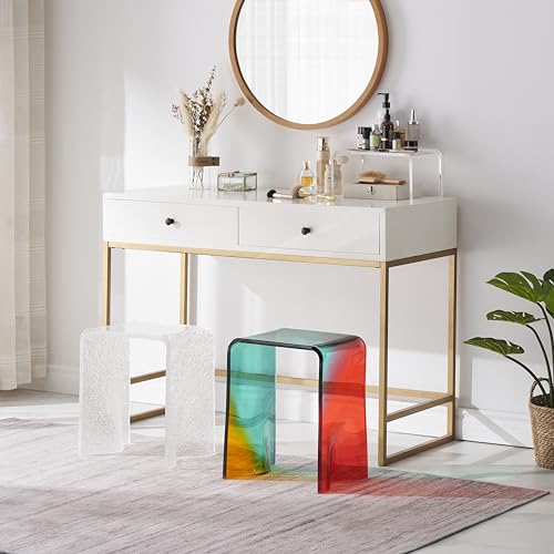 - 2.This colorful and creative shelf is perfect for adding an eye-catching touch of style to any room. Crafted with a high-quality acrylic design, it is sure to stand out amongst your home decor. The rainbow-colored accent will provide an upbeat and vibrant atmosphere, and the removable dressing stool makes it easy to store and clean when needed.