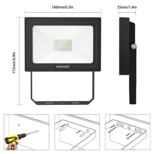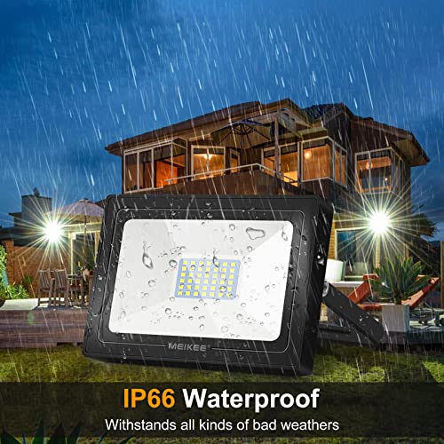 - [Brighter Lighting] Equipped with 2023 upgraded SMD LEDs, Our LED lights can produce super brightness up to 3000 Lumen. Wide beam angle of 120 degrees for wider coverage of lighting. The mask of the led spotlight is made of nano technology material, which can achieve better light transmittance. Compared to other Led floodlight with the same power, the brightness of the MEIKEE LED flood lights outside can be increased by 30%