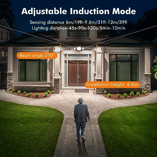- [Adjustable Sensing Distance]: Detection distance of the motion light is up to 12m(39.37ft), and it can be adjusted to 50%-80%-100%, that is about 6m(19.68ft)-9m(29.53ft)-12m(39.37ft). With 120° beam angle to light up maximum area, 180° Sensor angle to catch any movements around. MEIKEE 60W security lights provide security illumination for your home or other business accommodations