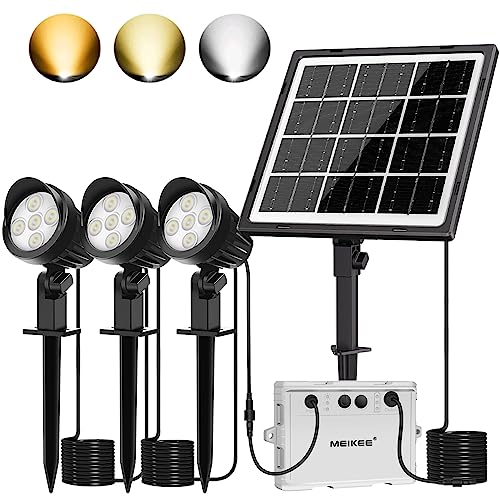 MEIKEE Solar Spot Lights Outdoor Garden Lights 3 in 1 Warm & Cold White Adjustable LED Garden Lawn Spike Light IP66 Waterproof Solar Landscape Sp