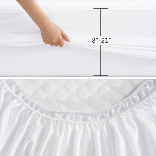 - 18 INCH POCKET FITS NICELY: Our mattress protector fits mattresses tightly and snuggly all sizes up to 8"-21" and features an 18 inch deep pocket that accommodates various mattress thicknesses. The highly elastic skirt is made of mesh fabric to prevent the mattress from moving.