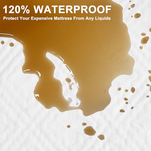 - 100% WATERPROOF & NOISELESS: MERITLIFE waterproof mattress protector is certified by OEKO-TEX and features a top TPU layer that effectively repels all liquids, including accidental spills and bodily fluids.It will keep your mattress clean and free from perspiration,bed wetting, liquids, stains,and other types of damage,therefore, it will help extend the life of your mattress.It's also noiseless and quiet, so you won't hear any plastic sounds when you move.