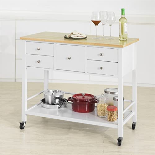 MIAOHY Kitchen Trolley Cart Kitchen Storage Trolley with 5 Drawers and Storage Shelf