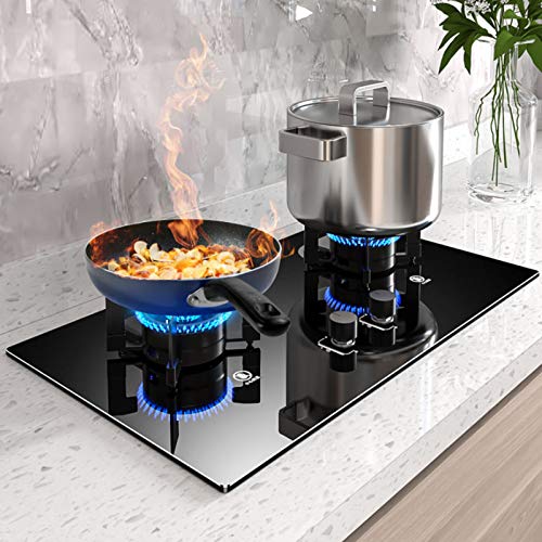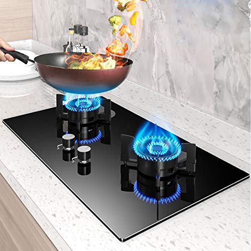 HomeLarge Appliances MILECN Built in 2 Burners Gas Stove Cooktop Tempered Glass Cooktop Gas Hob with Thermocouple Protection And Easy To Clean,Natural gas