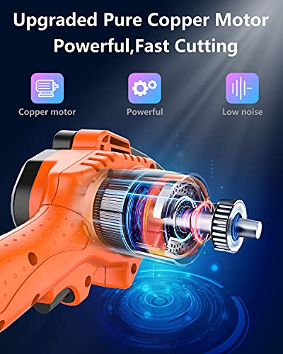 - 【One-Handed Operation & Easy Use】DDKJ chain saw has a non-slip handle, is ergonomically designed, and easy to operate. Even young women can easily control and use it, hold it for long periods of time without tiring their hands. Battery chainsaw is more convenient for outdoor work. Portable than wired chainsaw, faster than reciprocating saws, lighter than gasoline saws
