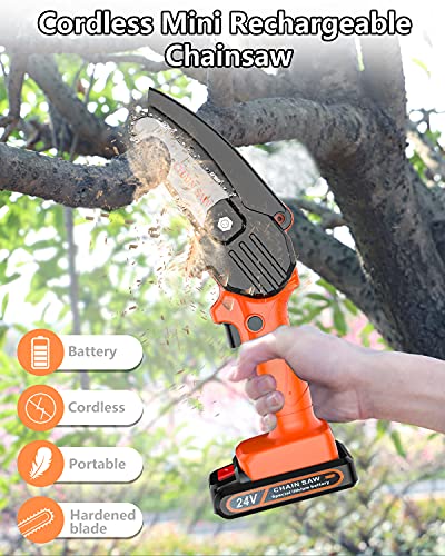 - 【Cordless Mini Rechargeable Chainsaw】DDKJ portable mini electric chainsaw comes with 2 large capacity rechargeable lithium batteries(24V 1500mAh), wireless restraint, lithium battery life, no need to refuel. 3 high-quality guide chains have undergone deep quenching process to ensure smoother cutting and more wear-resistance. Mini chainsaw is ideal for wood cutting, trees branches pruning, gardening