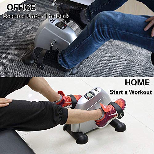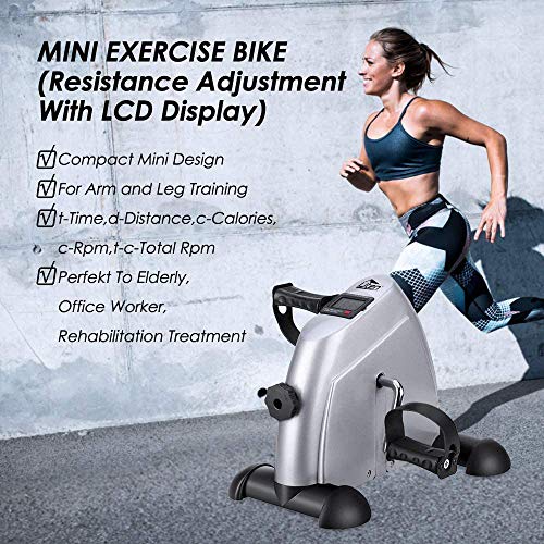 - LCD DISPLAY: This mini exercise bike pedals work out both legs and arms, the LCD computer displays show 4 values clearly: exercise time duration, calories consumed, cycles and revolutions per minute (rpm) and calories burned, and it also includes a scan feature that will show all measurements in sequence.