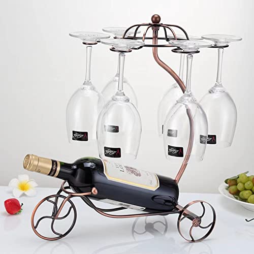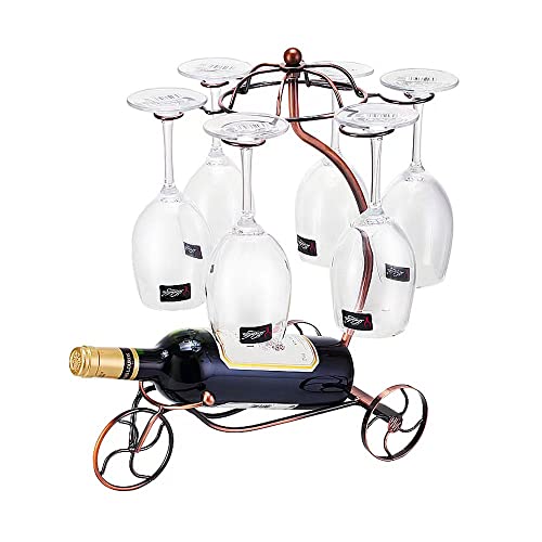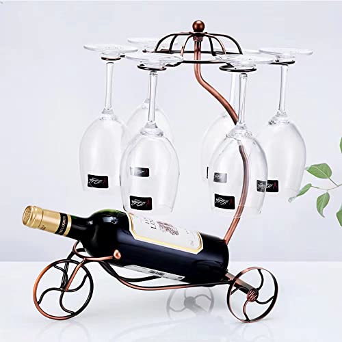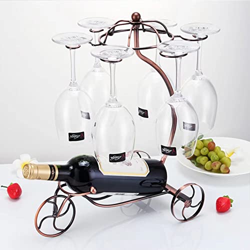 MISFOTY Wine Glasses Holder Rack, Storage 6 Stemware 1 Bottle, Bronze Metal Bicycle Wine Bottle Display Stands
