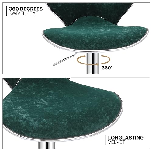 MoNiBloom Green Velvet Bar Stools Set of 2, Elegant Counter Height Barstools with Swivel Function, Sturdy Metal Base, Adjustable Kitchen Island S