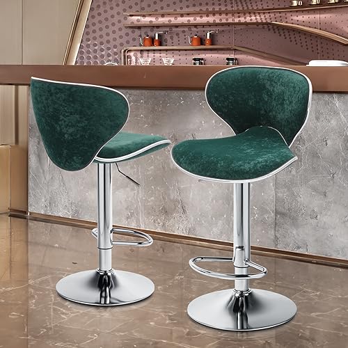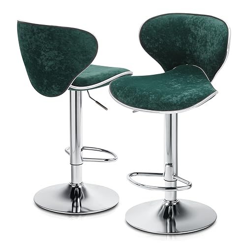 Home Home Bar Furniture MoNiBloom Green Velvet Bar Stools Set of 2, Elegant Counter Height Barstools with Swivel Function, Sturdy Metal Base, Adjustable Kitchen Island S