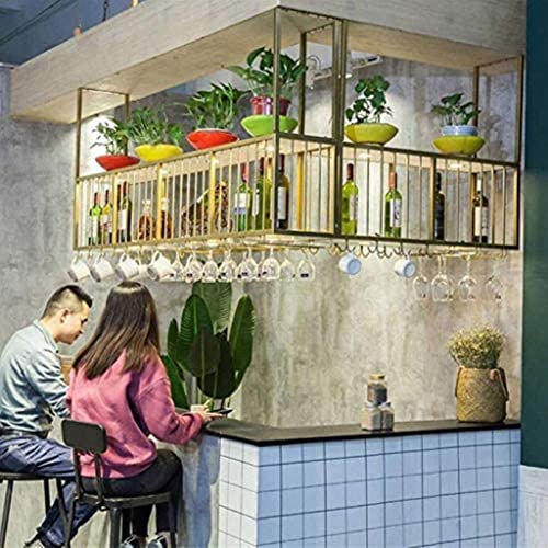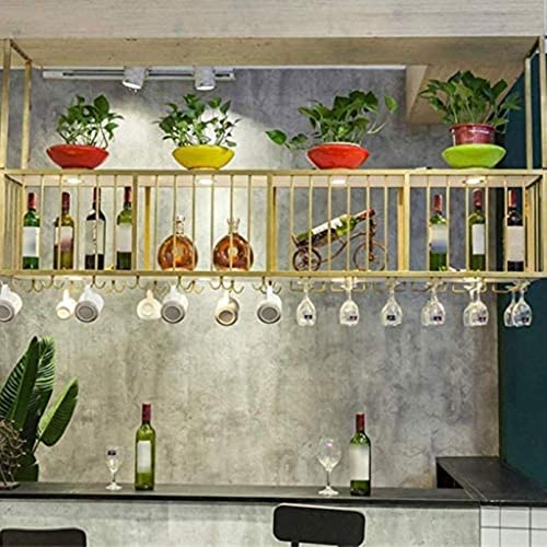 MONSEG Wine Racks Wine Rack Led Light Wall Hanging Vintage Wine Bottle Holder Ceiling Wine Racks Metal Wine Glass Rack For Bars Kitchens Wine She