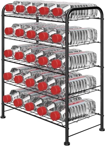 MOOACE 5 Tier Water Bottle Storage Rack, Freestanding Floor Water Bottle Organizer for Kitchen Pantry, Hold 30 Bottles, Black