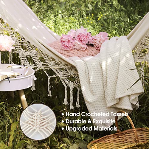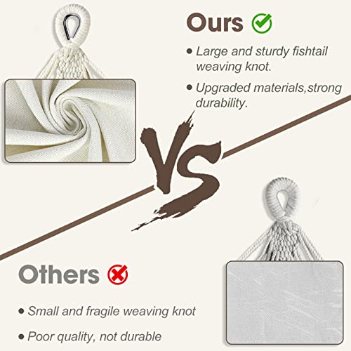 - Stylish Tassel Design----Handmade crocheted tassels are decorated on both sides of the hammock, which adds more romantic and elegant touch to life. Perfect for various scenes such as garden, living room, balcony, courtyard, beach and wedding.