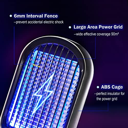 • 【Safe Bug Zapper】: The mosquito killer lamp uses premium ABS material as body. The inner electric grid is made by thick metal line to increase the electric shock effective. The sturdy and durable ABS cage is a perfect insulator to lock the electric grid and ensure safe. The electric grid also fenced with 6mm small interval to provent accidental contact and protect children and pets from electric shock.