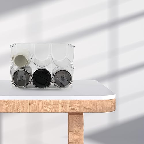 - CONVENIENT STORAGE - Keep your water bottles and soda cans organized with our Water Bottle Organizer. Each one holds up to 3 bottles or cans and can be stacked for more storage options. Great for cabinets, refrigerators, pantries and kitchen countertops.