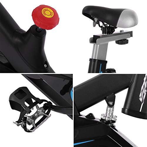 • 4. Humanized design: easy-to-read digital monitor tracks exercise data, including exercise time, speed, distance and calories burned; this indoor cycling bike uses cage pedals and special wheel transportation design, which is easy to move.