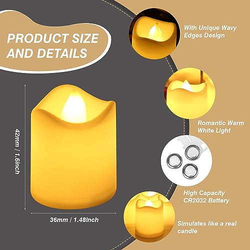 - 【Realistic And Bright】 Our battery tea lights are crafted to closely mimic the appearance of real candles. With their wavy edges and bright light emission, these led tea lights provide a remarkably realistic and authentic experience. The soft flickering effect perfectly simulates the traditional combustion of a real candle, ensuring that users enjoy the most lifelike ambiance