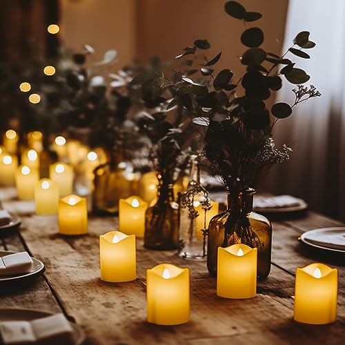 - 【Warm and Romantic Ambiance】 Our LED candles emit a warm white light and flameless effect, creating a genuinely romantic and cozy atmosphere. Whether you're setting the mood in a restaurant, hosting a family or garden wedding, organizing parties, or decorating holiday tables, these electric tea lights are perfect for creating a warm and intimate ambiance in any setting