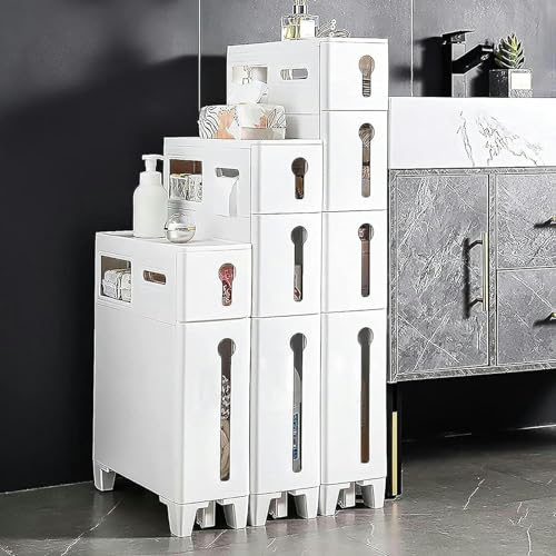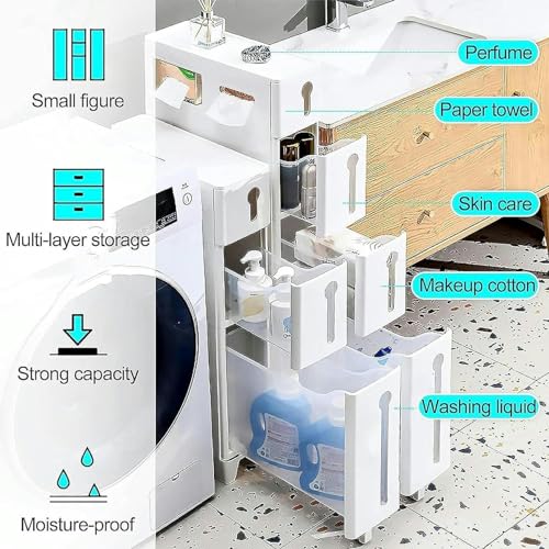 - 【Easy to move and clean】Narrow tall floor cabinet is designed with 2 rollers (rear wheels),which can be pulled out and pushed back by gently lifting the front.Smooth closed drawer storage space can be easily cleaned by simple wiping with wet cloth