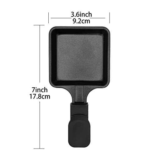 - PRODUCT DIMENSIONS:7x 3.6inches(18*9cm). Each package includes 4 pieces of cheese melting pans, the perfect accessory for raclette pans.
