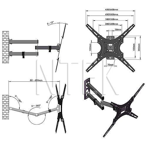 Home Home Entertainment Furniture NTEK TV Wall Bracket for 17-55 Inch TVs | Full Motion TV Wall Mount Bracket Swivels Tilts 35kg Weight Capacity Max VESA 400x400mm | Swivel Tilt S