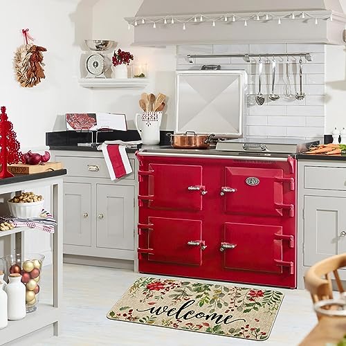 ORTIGIA Welcome Christmas Poinsettia Doormat Indoor Outdoor Patio Eucalyptus Leaves Door Mats Non-Slip Durable Entrance Mat for Home Entrance, Ou