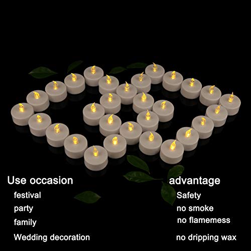 - 🎄CREATE AMBIENCE. The warm yellow flameless LED tea light candles flicker and provide the effect of an actual candle, perfect for Confession, decorating weddings,party decoration, room decoration, Christmas gifts, Valentine’s Day gifts, Mother’s Day gifts, Halloween decorations etc.