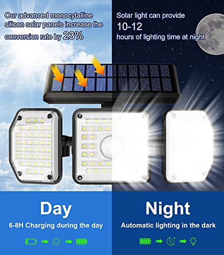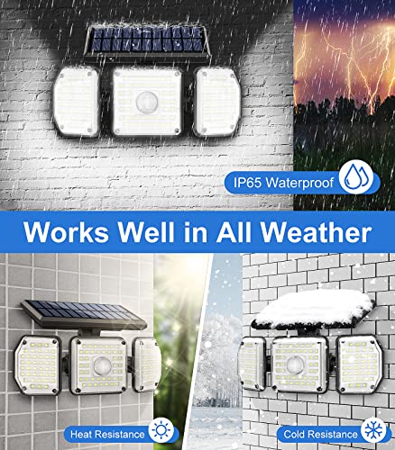 - 💡【IP65 Waterproof Solar Lights for Outdoor Use】 – Outdoor solar security light is made of IP65 waterproof ABS material that can withstand rain, snow, frost and heat. Flood lights outdoor can work well in various outdoor weather conditions. It is suitable for walls, fences, garages, front doors, yards, porches, driveways and stairs