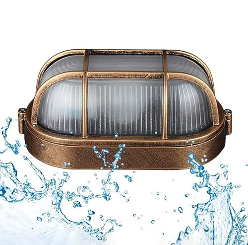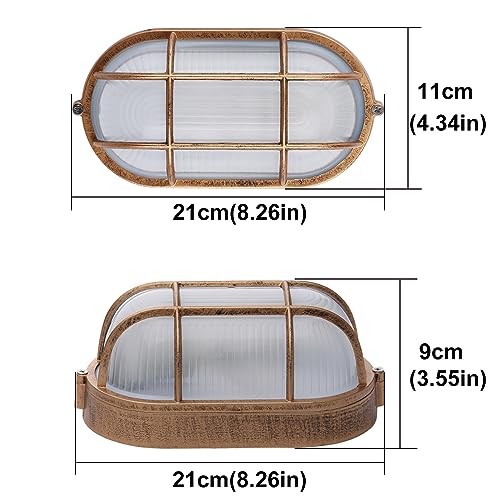 - 【HEAVY-DUTY】has tempered glass shields with vapor-tight seals to keep out moisture. The aluminum cages are vandal resistant, outdoor/indoor bulkhead wall/ceiling porch light fitting.