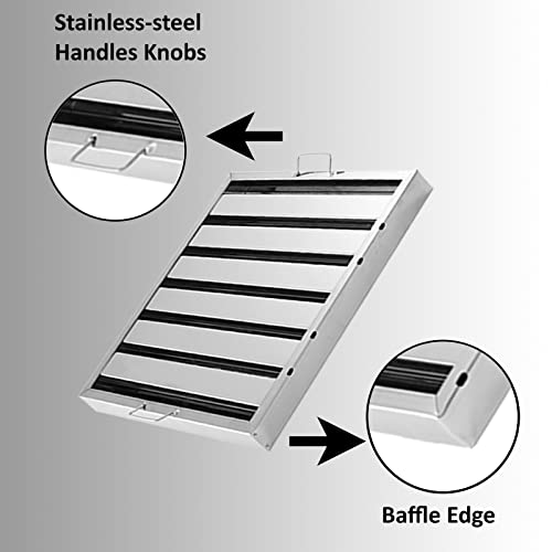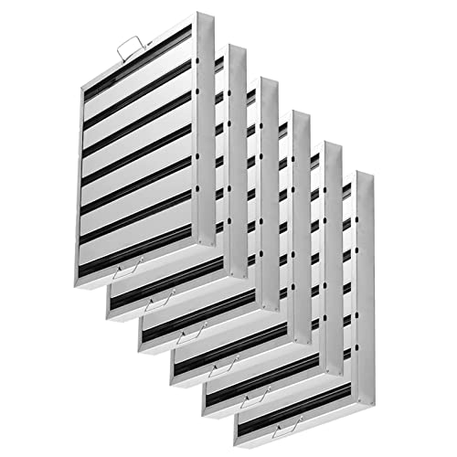 • ✅ Product Information: Pack of 6 Commercial Kitchen Hood Canopy Grease Baffle Filter Restaurant Takeaway Shop Canopy Filter Exhaust Hoods 18/8 Stainless Steel. The two holding-hanging hook knobs make it easy, fast and simple the removing, installation when it needs to be cleaned.
