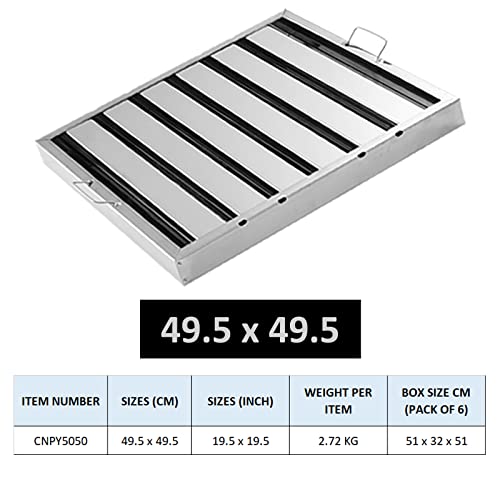 Pack of 6 49.5 CM x 49.5 cm Commercial Kitchen Hood Canopy Grease Baffle Filter Restaurant Large Canopy Filter Exhaust Hoods 18/8 Stainless Steel